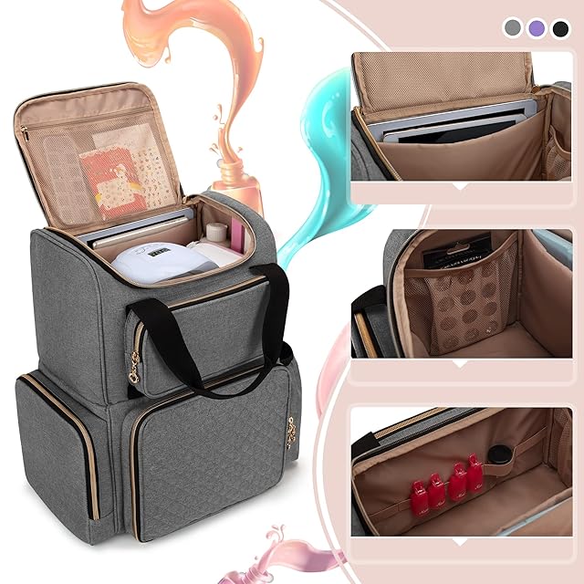 ネイルライトの保管:多くのポケットとゴムバンド付きの上の層にはドライヤー、コード、その他のネイル用品をきちんと整理することができます。