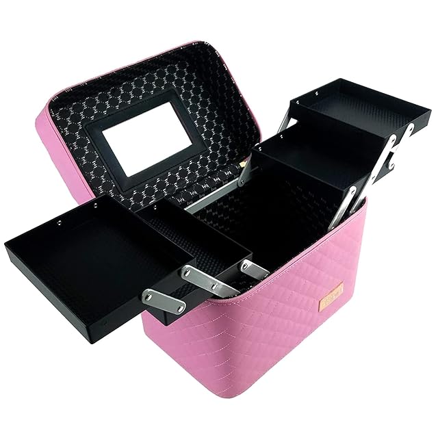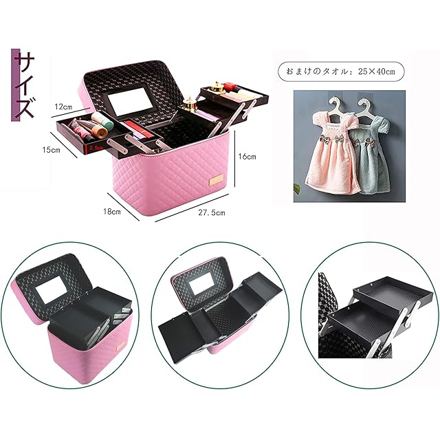 Yangweng メイクボックス 大容量 防水 収納ボックス 化粧品 コスメボックス 小物入れ 多機能 収納ボックス 持ち運び便利 鏡付き レディース プレゼント おしゃれ 韓国風 自宅 出張 旅行 タオル付き ピンク 2段トレイ