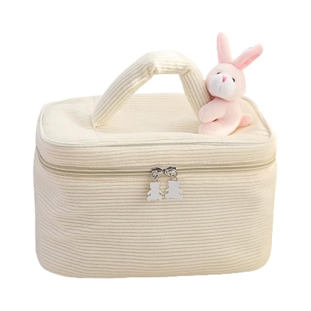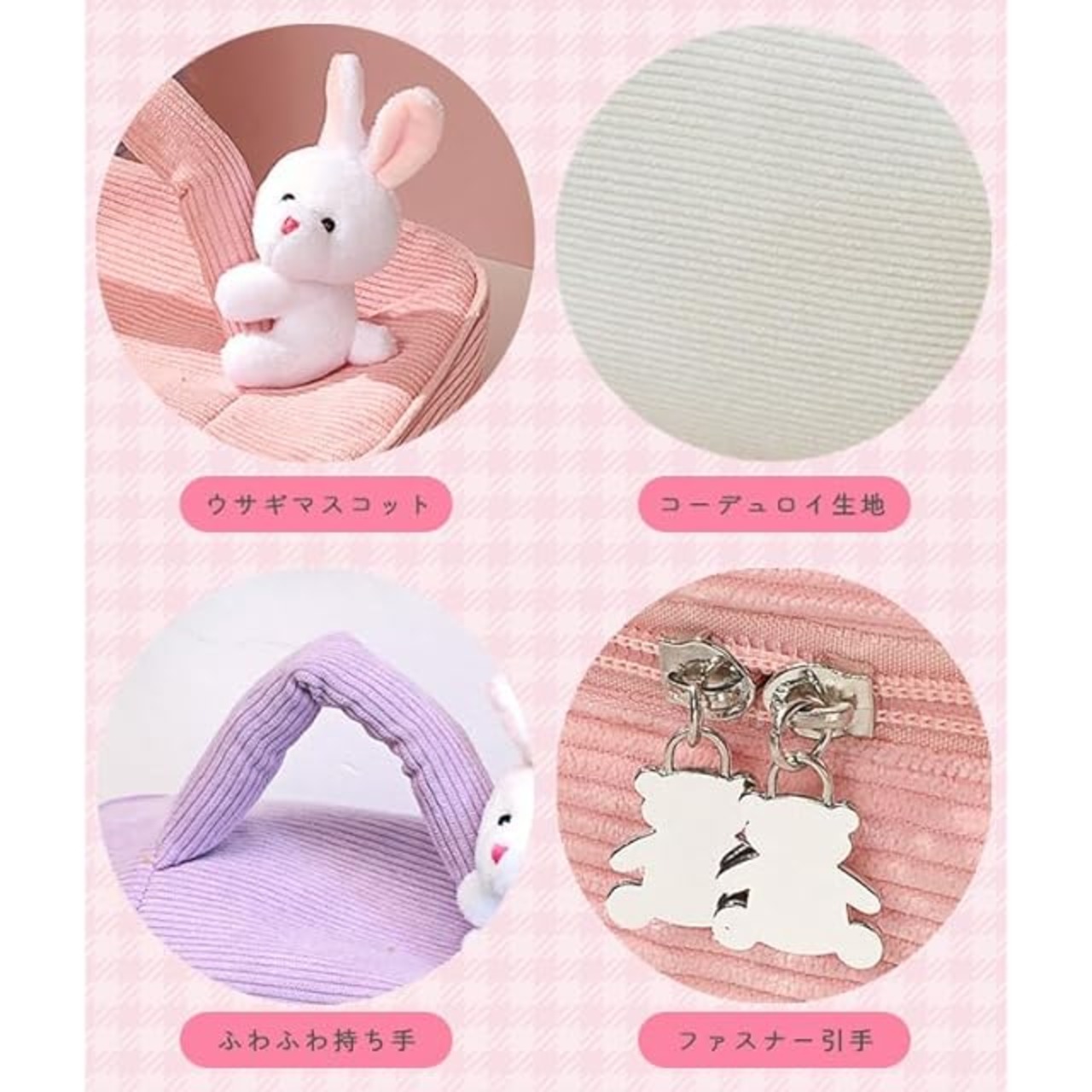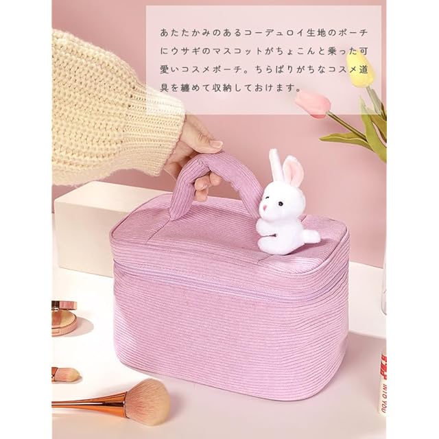 [スーツケースカンパニー]GPT コスメポーチ バニティポーチ 化粧ポーチ メイクポーチ 大容量 かわいい レディース メイク道具 収納 整理 旅行 コーデュロイ ウサギ ホワイト