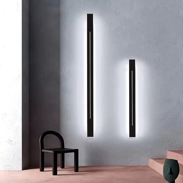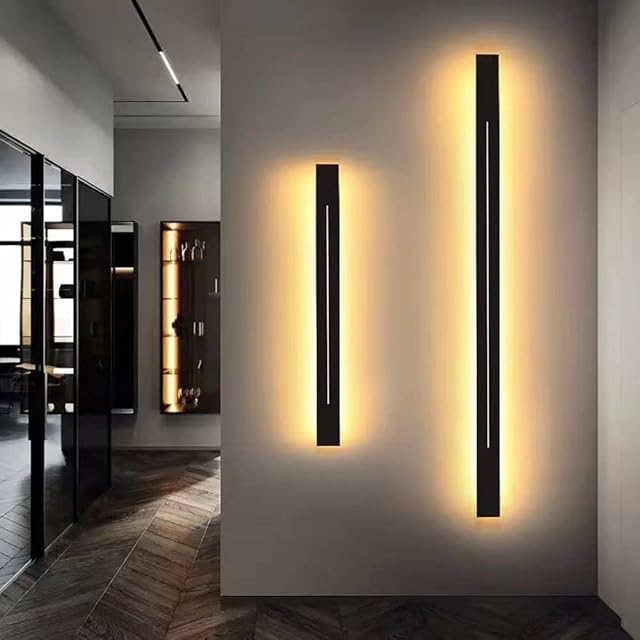 HONGYAN LED 玄関ライト 壁掛け ポーチライト 玄関 室内照明 ブラケットライト ウォールライト おしゃれ 北欧式 壁掛けライト モダン 長方形 横長 縦長 リビングルーム、ベッドルーム、廊下、階段の吹き抜けに適していま (31.5" (80cm), ブラック- 暖かい光)