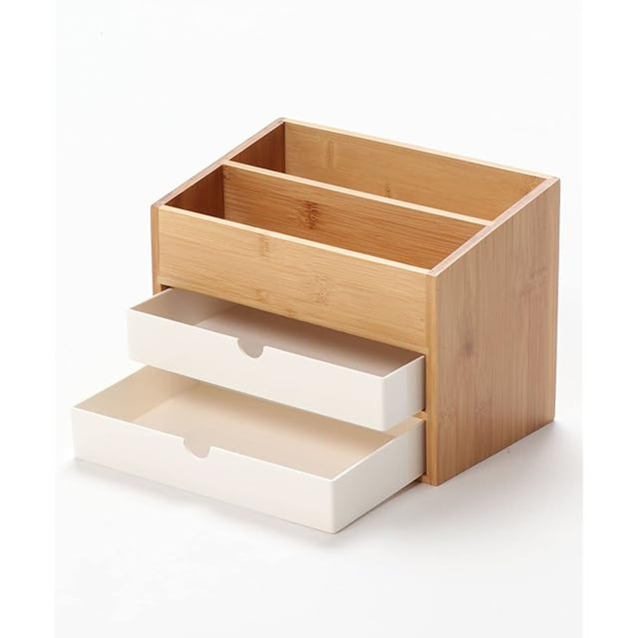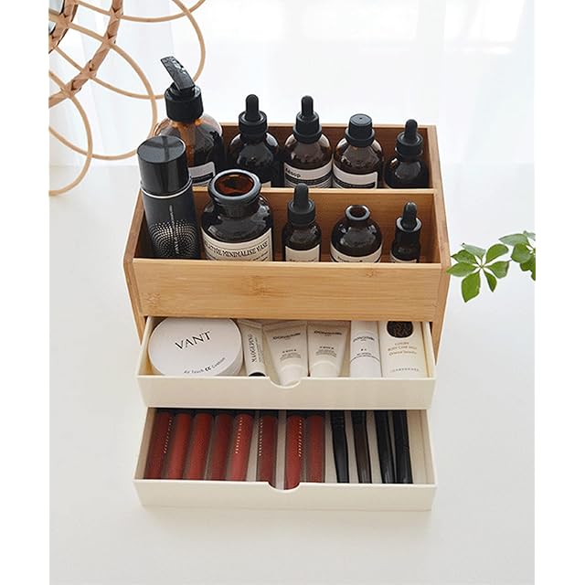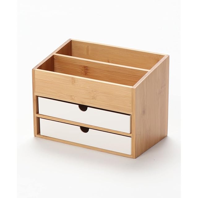 収納ボックス メイクボックス 大容量 木製 コスメボックス 可愛い おしゃれ 卓上 小物入れ 小物収納 引き出し 文房具 化粧品 メイクケース 収納 スキンケア インテリア ナチュラル 3段 バンブーナチュラル収納ボックス (ホワイト)