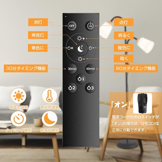 調色調光led電球9w*2付き:家族がそろう団らんの時間は明るく、寝る前のくつろぐ時間にはほんのり暗くするなど、リモコンで自由に明るさを調節できます。
