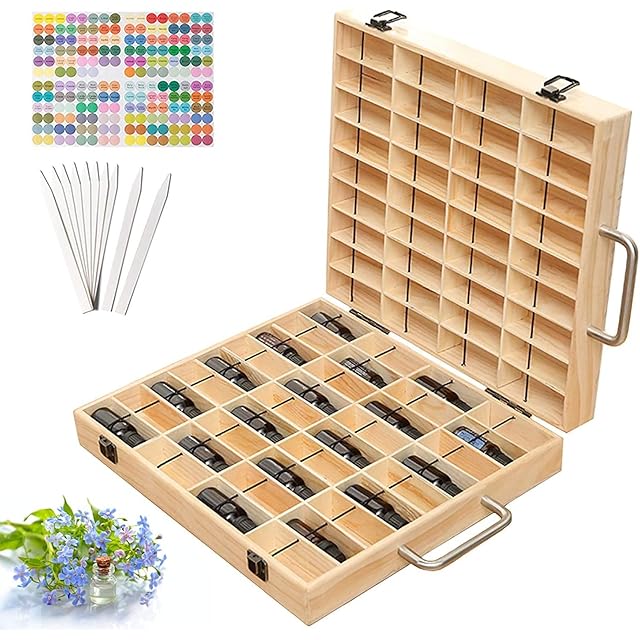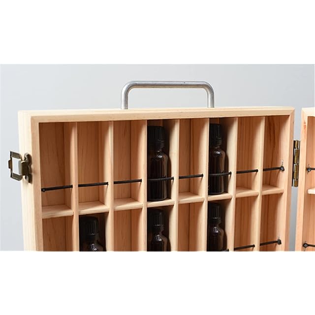 サイズ:72本用 木部外寸:約35x30x8.5 cm。 対応できる精油ボルト(5ml、10ml、15ml、20ml)。