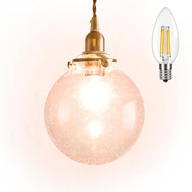VENTOTA ガラスペンダントライト 吊り下げ 間接照明 真鍮 E17 LED オシャレ デザイン アンティーク調 丸 レトロ シーリングライト 天井 照明器具 コード長さ調整可能 リビング ダイニング フィラメント電球付き MalmoBL