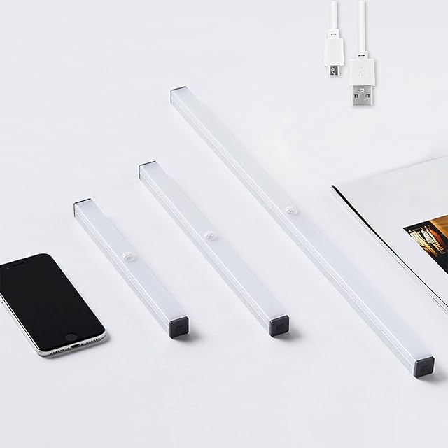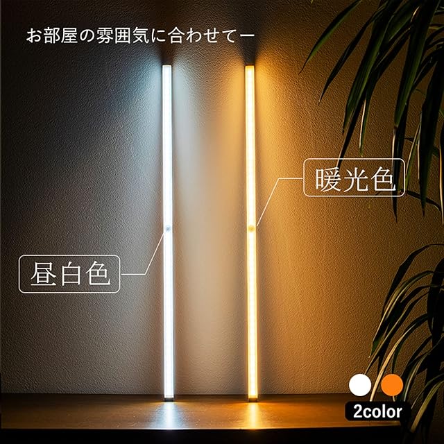 7Life LED センサーライト 人感センサーライト LED 室内 バーライト USB充電式 led バーライト 屋内 超明るい スリム 薄型 大容量電池 超薄型設計 階段ライト 足元灯 直付・壁付両用型 クロゼット/押入れ/流し元玄関/廊下/足元/デスク/キッチンライト 省エネ 高感度 高輝度 長寿命 (電球色(角), L*2(50cm))