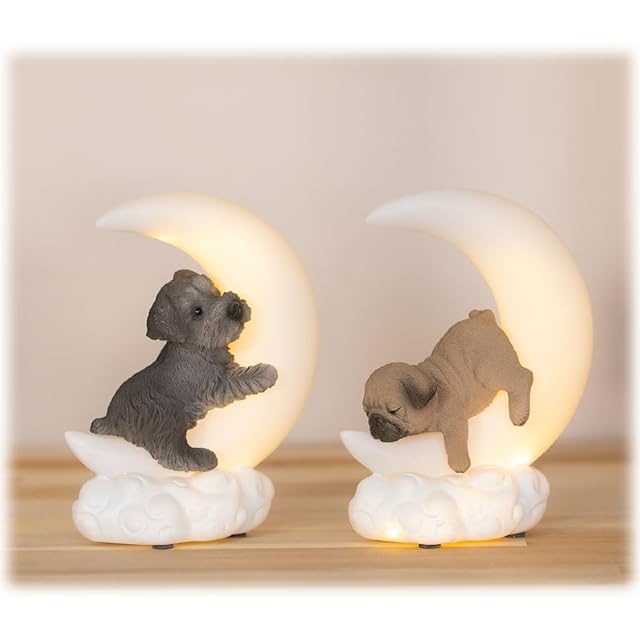 かわいい猫や犬たちがスヤスヤ眠るムーンライトです。LEDライトで優しくほんわり照らします。 ON OFFの簡単切り替えでお子様からお年寄りまで迷わずにご利用になれます。