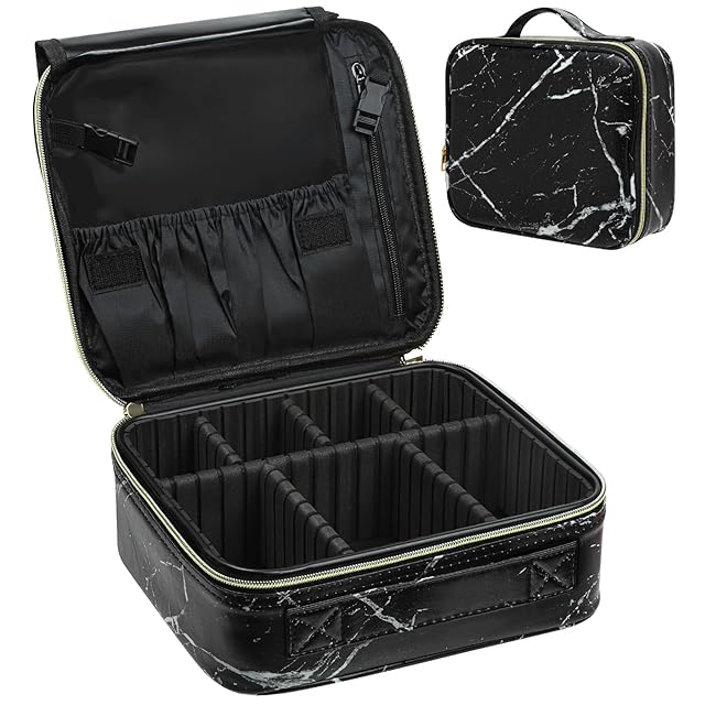 Colulu (コルル) 鏡付きメイクボックス 大容量 高見え 持ち運びに便利 メイク道具 コスメ 収納 化粧ポーチ コスメポーチ 旅行 (大理石ブラック)