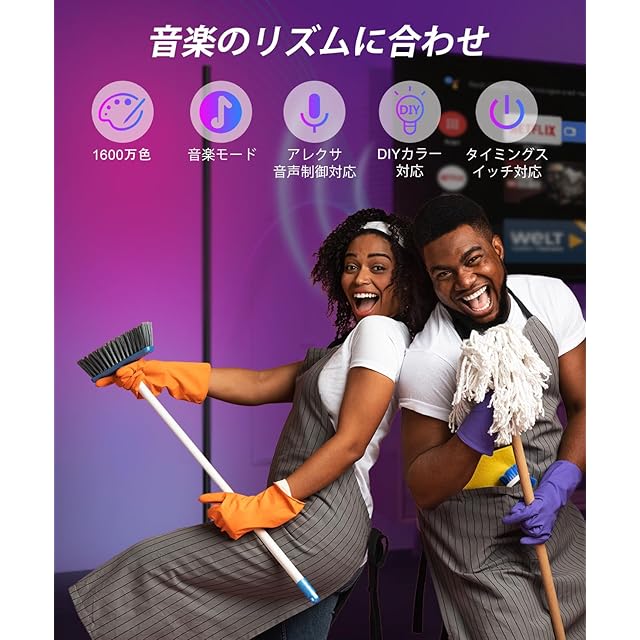 【狭いスペースにも置ける】従来型のフローリングライトに比べ、この細長いデザインはスペースを占有せず、部屋の角に置くのに適しています。組み立て後の全長は153cmで、細くても存在感があります。他の低品質の金属やPVCから作られたRGBランプと違い、当社のランプは優れたアルミニウム合金を採用しています。シンプルで滑らかなデザインは、インテリアとしても美しく、北欧スタイルの部屋や自然な和室にも取り付けることができます。