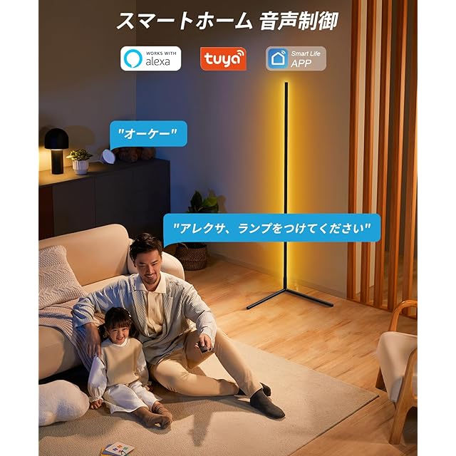 RGB フロアランプ 間接照明 Alexa対応 高さ155cm フロアライト 1600万色 LEDランプ コーナーライト 調光 調色 スマートホーム 日本語取扱書 フロアスタンド・ランプ 寝室/リビング/遊戯室など適応