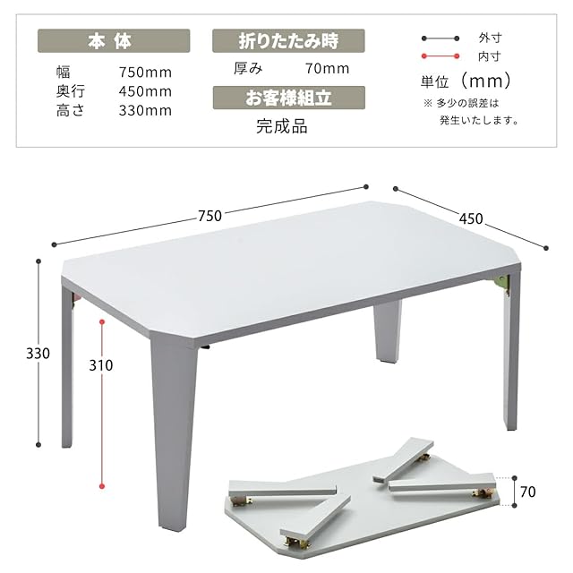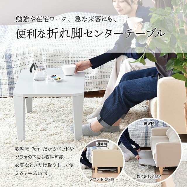 Anew 折りたたみテーブル ベージュ 折れ脚センターテーブル ローテーブル 75cm