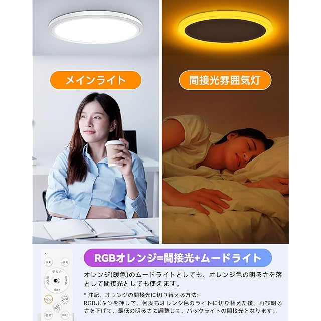 【最新版】: ○背面の常夜灯と前面の昼白色は同時に点灯可能です。リモコンの「点灯」と「常夜灯」ボタンを押すだけで操作できます。○常夜灯の明るさは自動的に調整され、リモコンの「明るい」と「暗い」ボタンで簡単に変更できます。