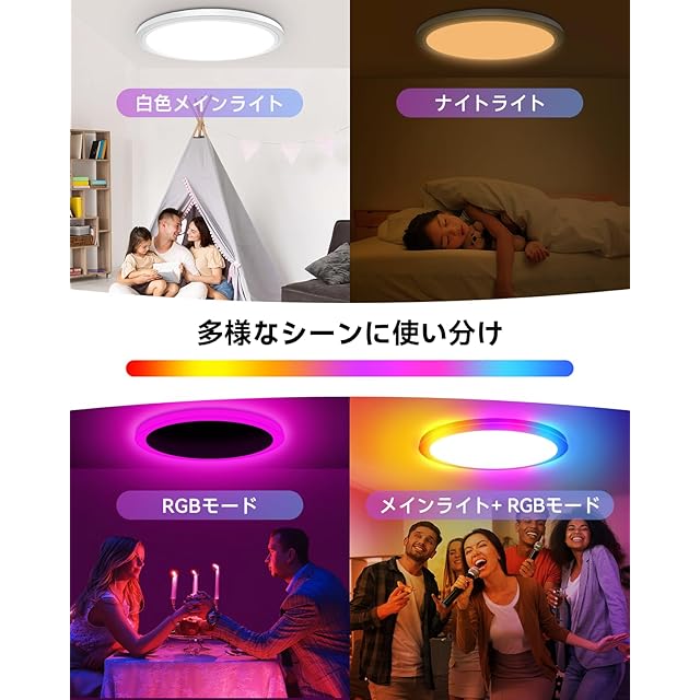 【スマートメモリー・自動消灯機能】○賢いメモリー機能: 他社製品の多くは、常夜灯の設定が翌朝に戻ってしまうため、何度も再設定が必要です。この天井照明器具は、常夜灯使用時でも、次回点灯時には前回の設定を再現できるため、翌日もスムーズに使えます。○自動消灯機能: 15分、30分、60分後に自動的に消灯する設定が可能で、消し忘れの心配がありません。