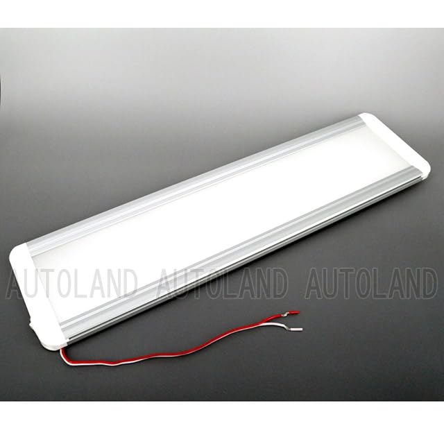 洗練インテリアデザインルームライト <br> 自動車等用のLEDライトです。 <br> 内蔵LED発光が特殊フィルムパネルを拡散透過する事により、パネル全面が発光するデザインです。 <br> 直進性の強いLED光を透過発光拡散させるので、車内全体を明るく照らす事に加え、直視した時の眩しさが軽減されます。<BR> 12V・24V兼用なので、乗用車から大型トラック、船舶ボートまで幅広くご使用いただけます。 <br> ON/OFFスイッチ付なので、補助照明等に最適です。 <br> インテリア性のあるフラットデザインなので、天井照明以外にも側面・足元照明等にもいかがでしょうか? <br> <br> 【仕様】<br>寸法:465×120×12mm<BR> 質量:500g<BR> 定格電圧:DC12V/24V(対応電圧10-30V)<BR> 消費電流:12V 1.0A/24V 0.5A<BR> 定格消費電力:13W<BR> 作動温度:-35℃~+65℃<BR> ※自動車バッテリー電源等以外の発電機等から接続しますと、対応電圧内でも発熱等故障の原因となりますのでご注意下さい。<br><br>【ご使用方法】 <br> 配線は(+)(-)となります。ON/OFFスイッチで点灯、消灯操作を行えます。 <br> 取付けは付属のビス止め、または粘着テープ等での貼付け(テープは付属しません)となります。 <br> 4隅のビス穴は付属のキャップで隠す事が出来ます。 <br> <br> 【注意事項】 <br> <br> ※防水仕様ではないので車外でのご使用は行えません。 <br> ※取り付けは十分に注意して確実に行って下さい。当商品装着により生じた事故、損傷等の責任は一切負いかねます。