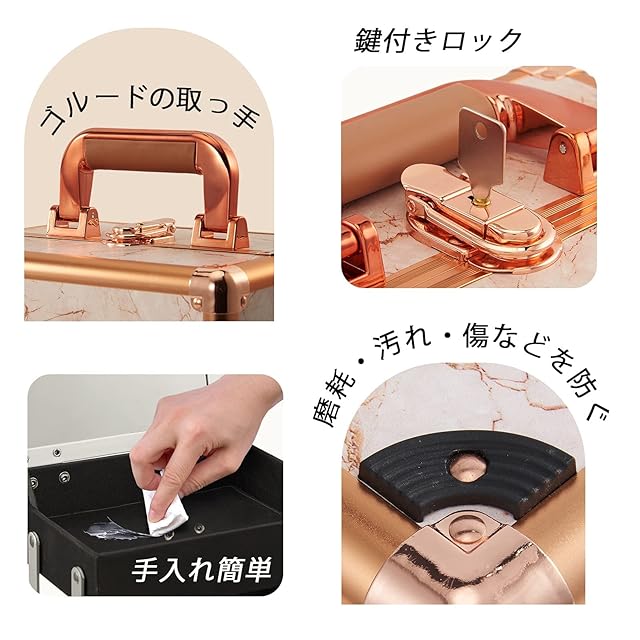 【オススメ理由】徹底的に使いやすさにこだわった「Joligrace メイクボックス」ローズゴルードシリーズの中型の化粧ボックスです。他社製品にない高級感、便利な収納機能はそのままに、断捨離やインテリアの大理石柄で整理意欲が高まる女性に向けて、時代に合わせたデ ザインへリニューアルします。
