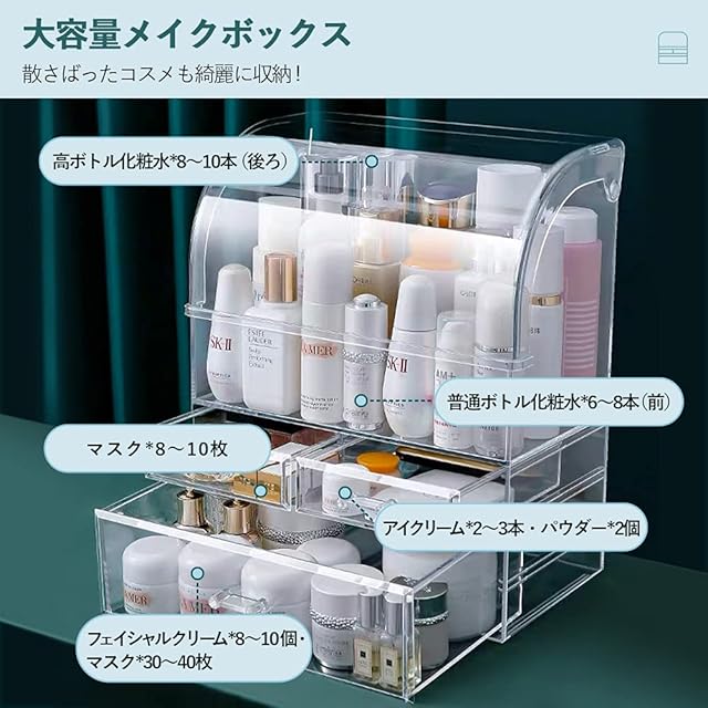 化粧品収納ボックス 大容量 メイク コスメボックス 多機能化粧品ケース 防水防塵 三層の連体設計 強い耐久性 整理簡単 引き出し 化粧品入れ コスメ収納 女子へのギフト