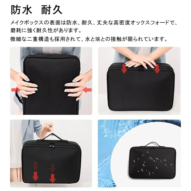 化粧ポーチ メイクボックス 大容量 便携式 化粧バッグ 化粧品収納 コスメポーチ 持ち運び メイクぼっくす 収納ボックス 化粧品 小物入れ 旅行 出張用(黒)