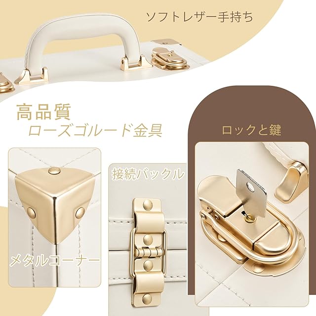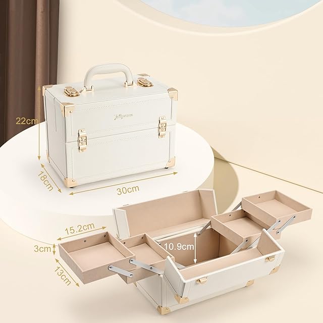 Joligrace メイク ボックス 大容量 化粧品収納ボックス コスメボックス 3段トレー 化粧箱 化粧ボックス 化粧品 収納 ネイル収納 化粧ケース 化粧品ボックス バレンタインデー プレゼント(ホワイト)