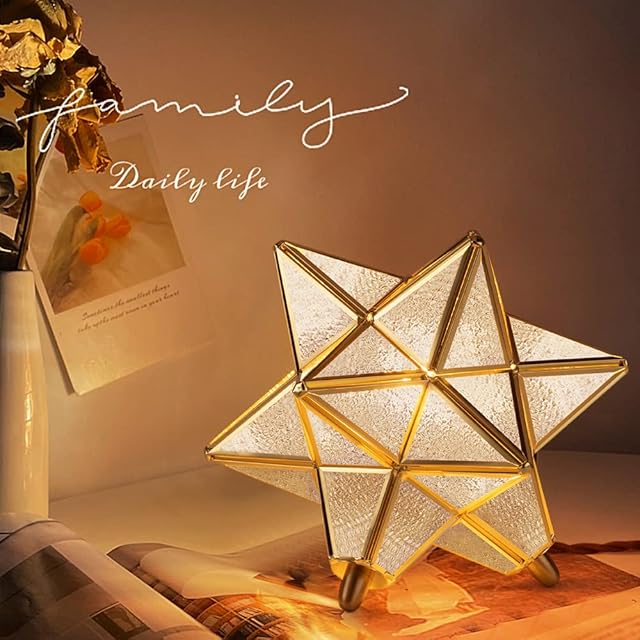 Cerdeco 幻想的に広がる星のシルエット テーブルライト スタンド照明 デスクライト 真鍮&ガラス 雰囲気たっぷりな影 インテリア照明 間接照明 スタンドライト ベッドサイドランプ 手軽に贅沢 星形 TBL43