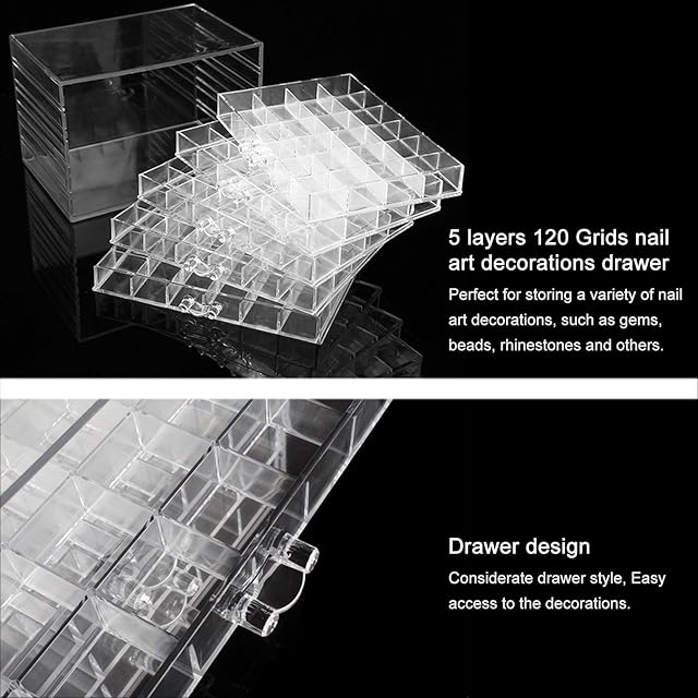 【十分なスペース】5層120グリッドネイルアートデコレーションドロワー、たくさんのデコレーションを収納するのに十分なスペース。