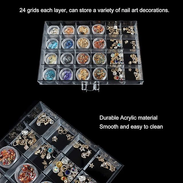 【幅広い用途】ネイルアートのデコレーションをすっきりと分けておくことができます。ジュエリー、ビーズ、ラインストーンなど、ネイルアートのデコレーションを収納するのに最適です。