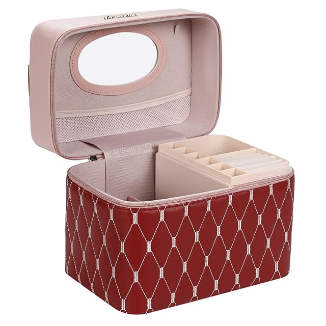r_planning 化粧箱 メイクボックス コスメボックス 小物トレー ミラー付 レッド×ローズ