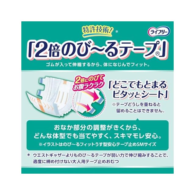 ライフリー 【ケース販売】 テープ止めおむつ のび~るフィットうす型安心軽快テープ止め S~Mサイズ 84枚(21枚×4)4回吸収 【寝て過ごすことが多い方】