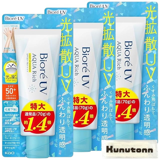 ビオレ UV アクアリッチ ライトアップ エッセンス 100g 3個セット 日焼け止め SPF50 + Kunutonnオリジナルロゴ入りhおしぼり付