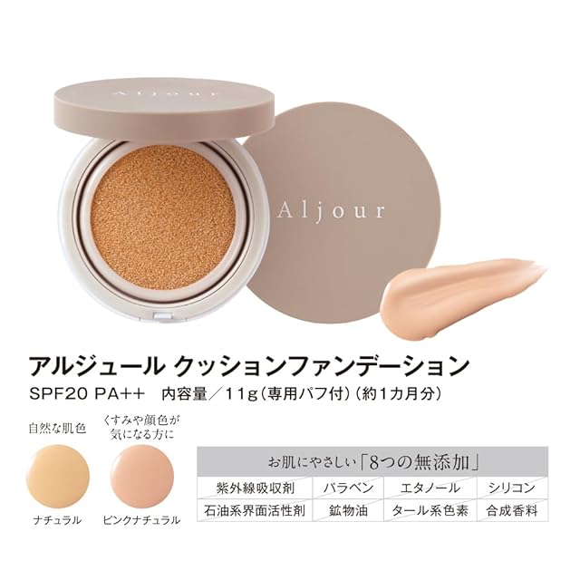 アルジュール クッションファンデーション SPF20 PA++ レフィル コンパクトセット (ナチュラル) 美容液配合 日焼け止め コンシーラー 化粧下地
