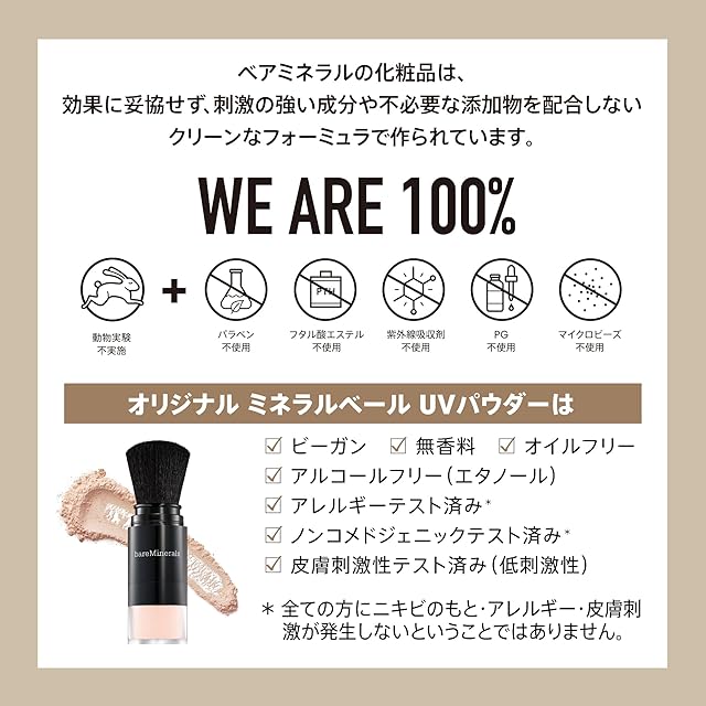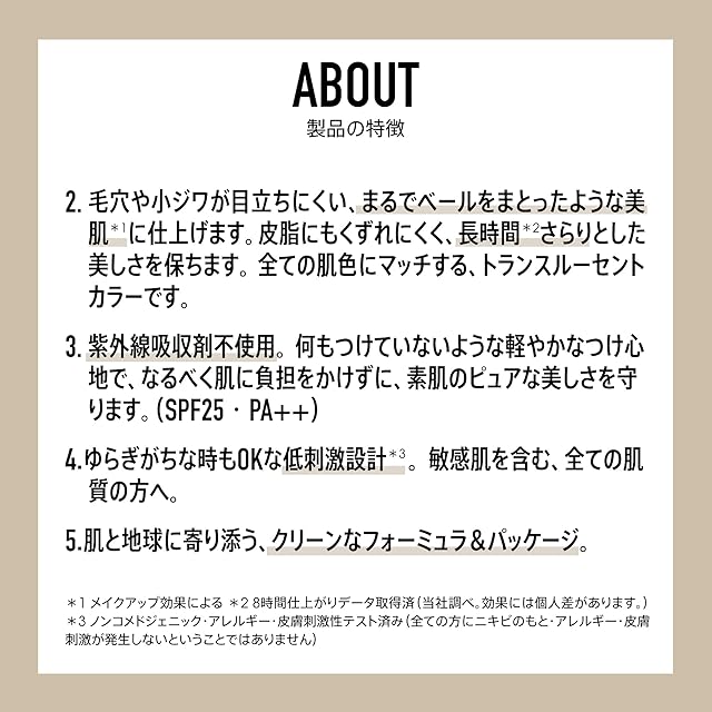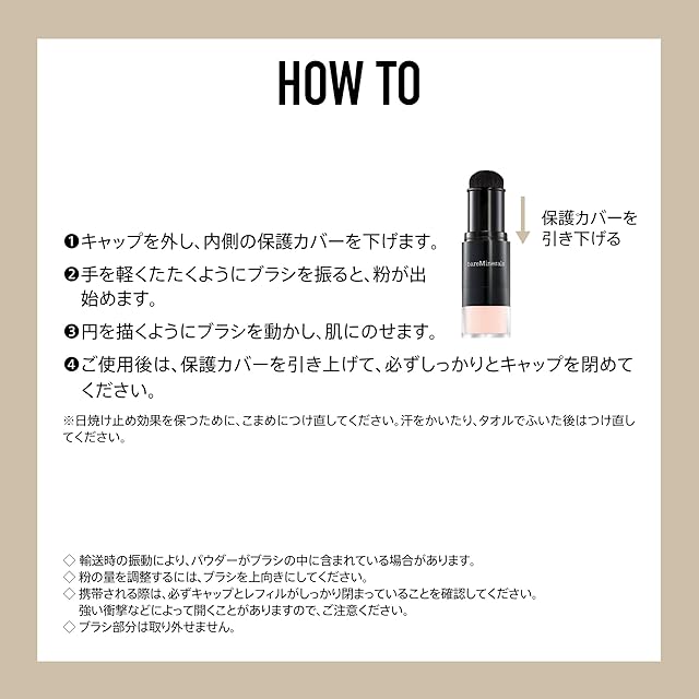 「ノンケミカルUV(紫外線吸収剤不使用) 」「ルースパウダー」 「ブラシ」が1つになった便利な一体型。