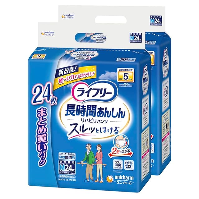 【ケース販売】 ライフリー パンツタイプ リハビリパンツ Mサイズ 24枚×2パック 5回吸収 大人用 オムツ 【ADL区分:立てる方】