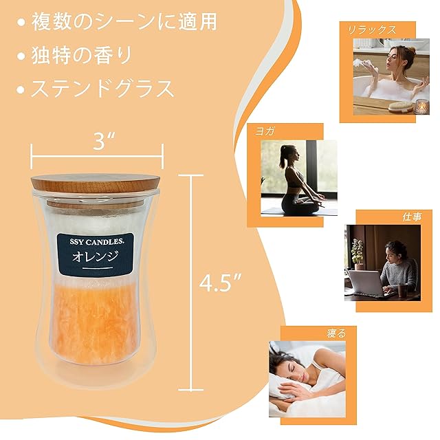 ジャーキャンドル 香り:アロマキャンドルは高級な植物性ワックスと丁寧に調合された香料で作られ、業界でも屈指の香りと燃焼時間を誇り.