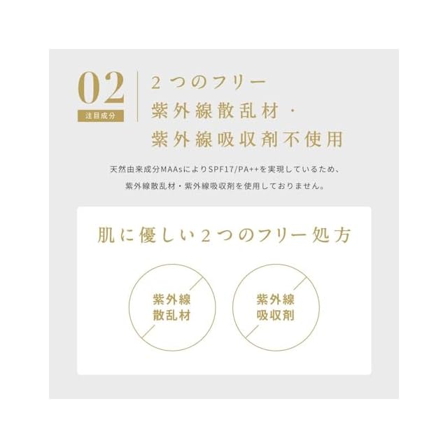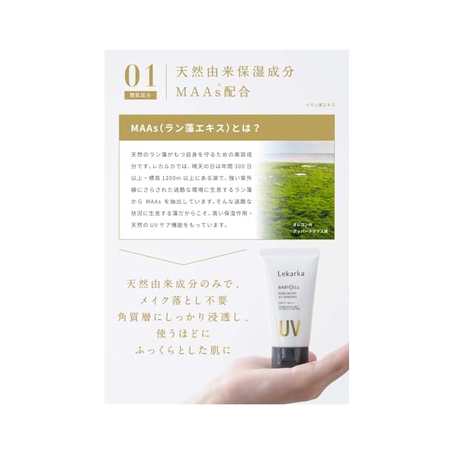 天然由来の潤い成分MAAs(ラン藻エキス)を配合した SPF17/PA++クレンジング不要のUVミルクです。