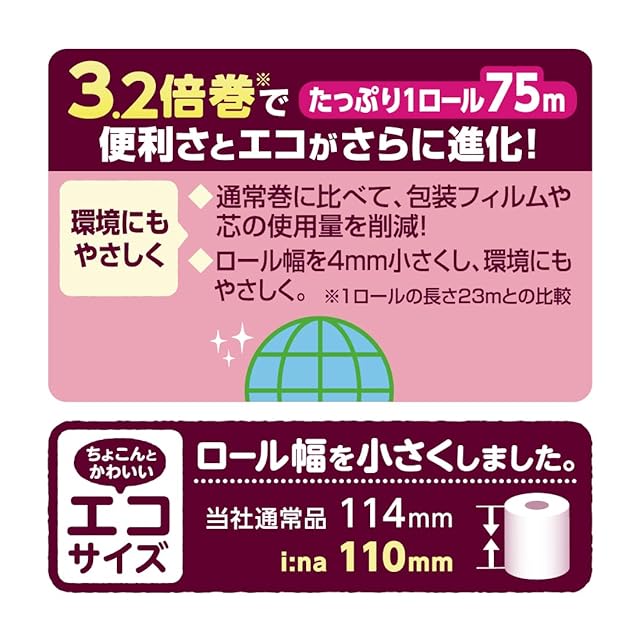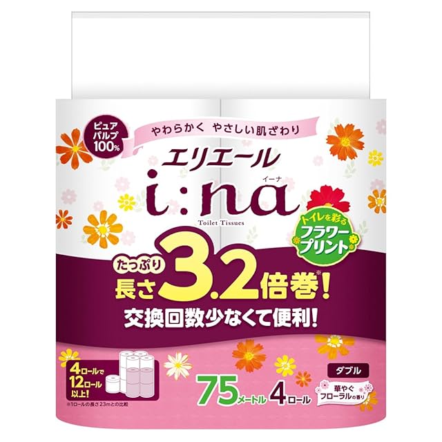 エリエール トイレットペーパー i:na(イーナ) フラワープリント 3.2倍巻き 75m×4ロール ダブル パルプ100% 華やかなフローラルの香り