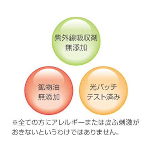 ●紫外線吸収剤無添加●無香料・無着色●パラベン無添加●鉱物油無添加●光パッチテスト済