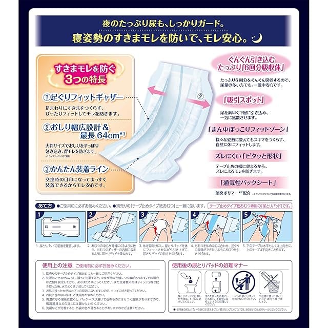 たっぷり6回分をぐんぐん吸収するので、尿量の多い方でも、一晩中心配なしです。