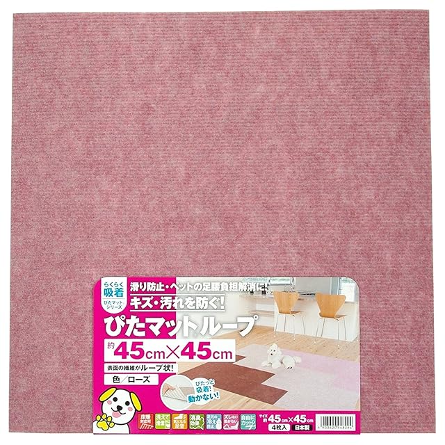 ワタナベ工業 国産タイルカーペット 吸着ぴたマット ループ 4枚組 45X45cm ローズ