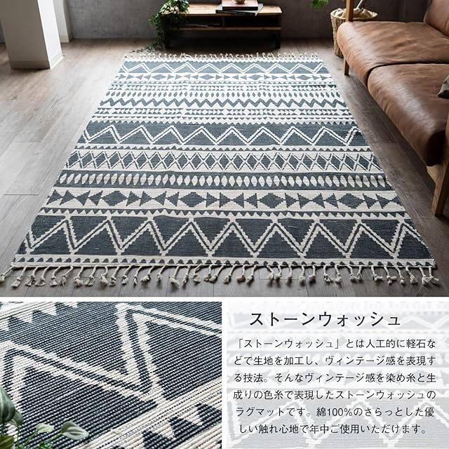 【備考】洗濯可(洗濯ネットをご使用ください、乾燥機は不可) / 折りたたみ可 / 床暖房の上敷き、ホットカーペットカバー対応 (※商品写真は140x200cmを使用しております。)/風合いにこだわる為、糸をミックスしてヴィンテージ感が出るようにしています。一点一点手作業で作る為に織りムラや歪みなどを感じることがあると思いますが、これもハンドメイドの味わいですので、ご理解くださいませ。/洗濯時に色落ちする場合がございますので、漂白剤及び漂白剤入りの洗剤のご使用は避け、他の物と分けて単独でお洗いください。洗濯で縮みますのでご注意ください。/完全に乾いた状態でご使用ください。/インド綿製品は色落ちしやすい特性があります。摩擦や水濡れ、汗によって色が移る可能性がございます。/インド綿の特性上、織りムラ、節、ネップ等ございますのでご了承の上、ご購入ください。