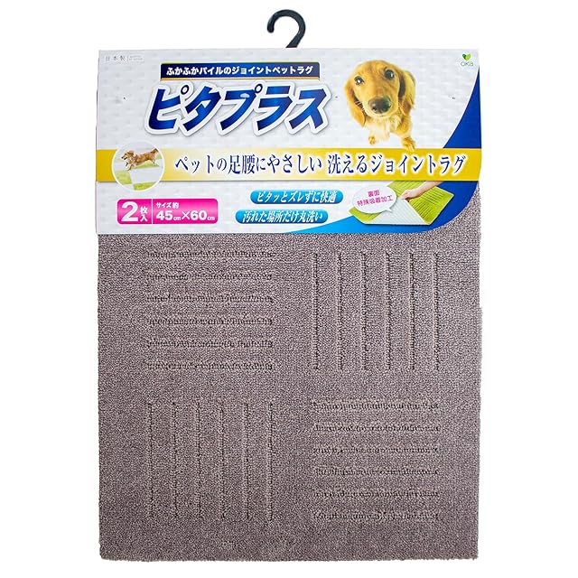 オカ タイルカーペット ブラウン 約45cm×60cm(2枚入り) ピタプラスPET (ジョイント 吸着 洗える)