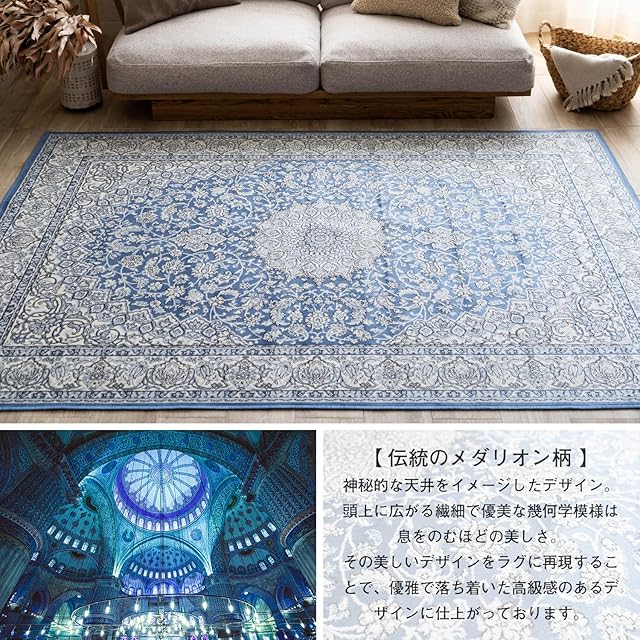 【サイズ】約 135x195 cm / 約1.5帖 / 長方形 【カラー】ブルー
