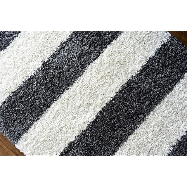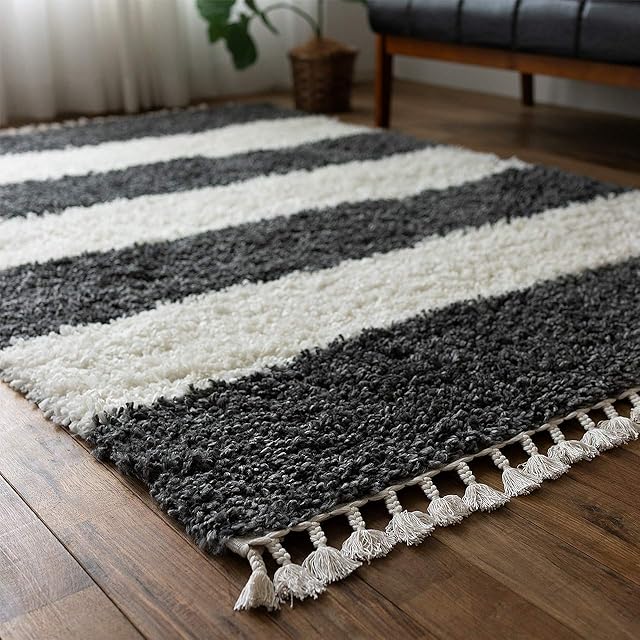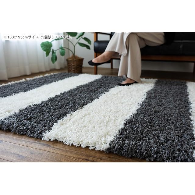 サヤンサヤン 北欧風 ボーダー シャギー ラグ マット セル 133x195 1.5畳 ダークグレー