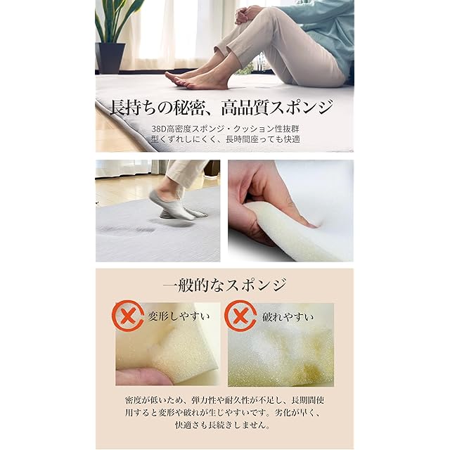 【内部までこだわり】 中間層には38D高密度スポンジを使用。型崩れしにくく、耐久性に優れ、長時間座っても快適
