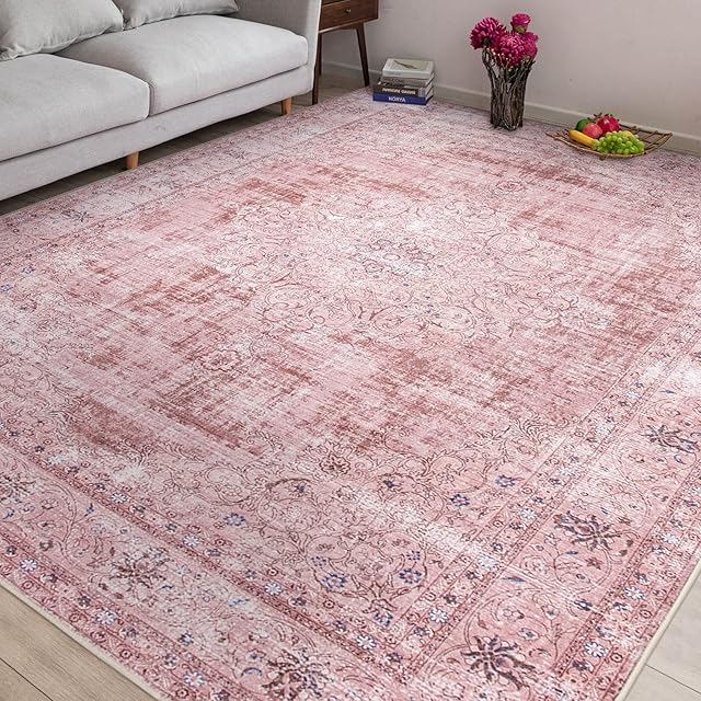 DECOMALL カーペット 3畳 ペルシャ絨毯風 ラグ 洗える 160x230CM 花柄 オールシーズン ピンク 滑り止め 防ダニ 防臭 床暖房対応