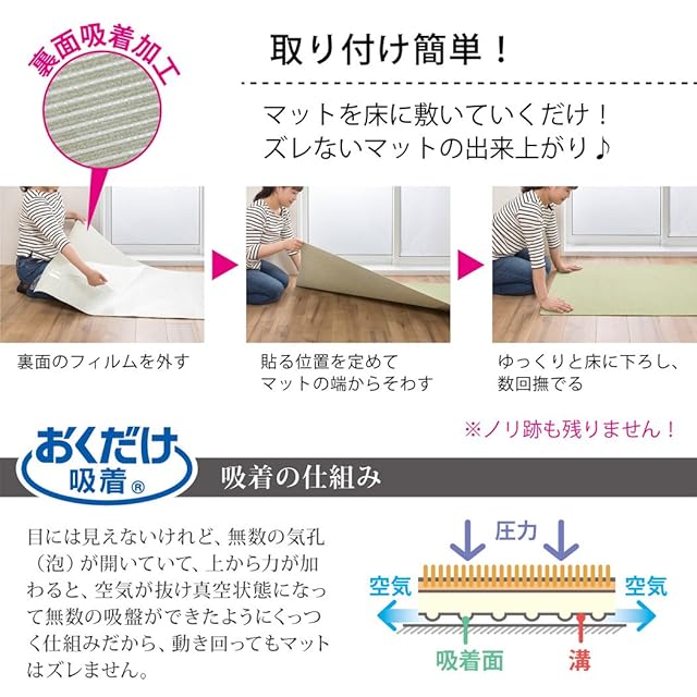 【おくだけ吸着】 床に置くだけでズレない特殊加工・掃除機を掛けてもズレない吸着力
