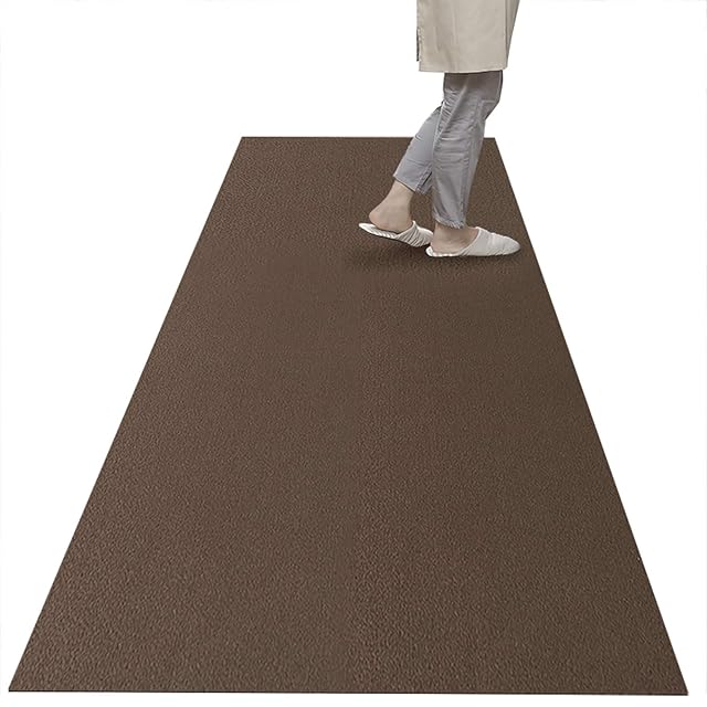 サンコー キッチンマット はっ水 洗える ロングマット 台所 廊下 日本製 おくだけ吸着 カーペットタイプ 90×240cm ブラウン KL-54