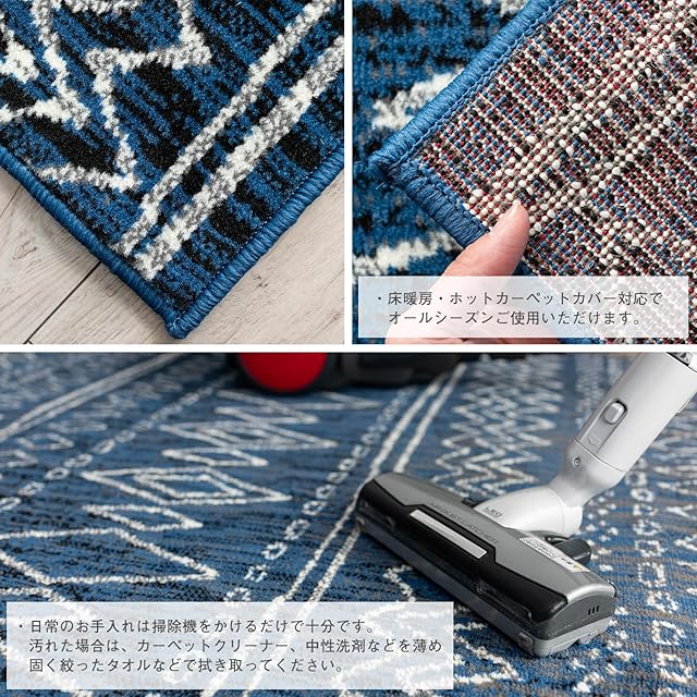 【輸入カーペットを安心してご利用いただくためのお願い】 ●輸入ラグに関して ※同じ商品でも製造ロットの違いによって、サイズや、色味、柄模様の左右が反転していたり、位置がズレている場合がございます。ただし、現地の工場や倉庫での検品をクリアした商品を輸入しています。あらかじめご了承くださいませ。/ ●においに関して ※ご使用当初、裏面に塗られる仕上げの接着塗料(ラテックス剤)のにおいがする場合がございます。人体への影響はありませんが、においに敏感の方や、ご心配の方はご理解の上ご購入お願いいたします。開封後常温のもとで気化(蒸発)するため、においはご使用につれてなくなります。気になる場合は風通しの良いところで陰干ししていただきますと、より早く解消されます。/ ●サイズに関して ※カーペットの製法上、表示サイズより0~3%の誤差がございます。/ ※いずれも商品の初期不良ではございませんので返品・交換は行なっておりません。(※お客様で返品の送料ご負担によるキャンセルは、返品規定に基づきお受けさせていただきます。)/ ※裏面の製品シールは剥がさないでご使用ください。