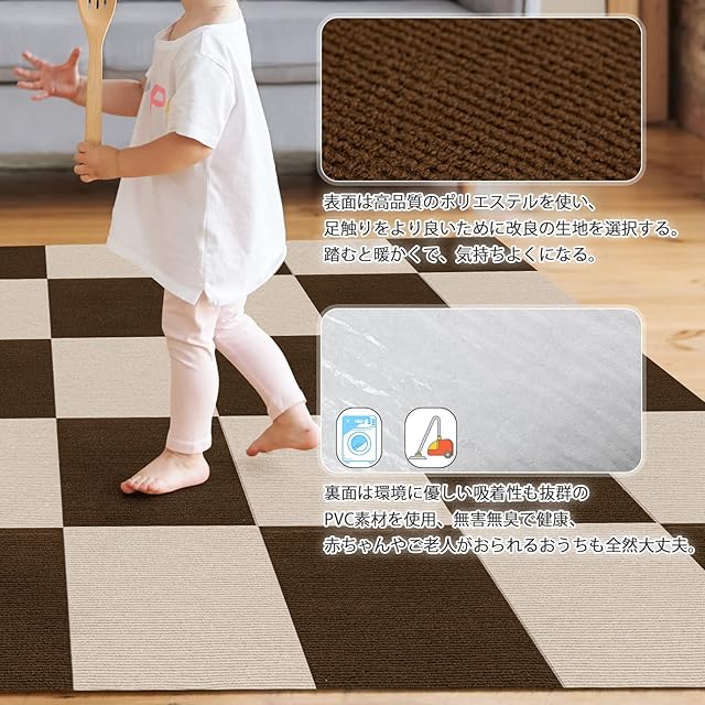 5、「お手入れ簡単、1枚でも洗える」汚れた時はこの分だけを外して洗えば大丈夫、手洗いでも洗濯機丸洗いでもできます、洗ったら繰り返し使用可能です。厚さ4mmのマットは毛深いカーペットより乾き早いです。普段のお手入れはより簡単で便利な生活環境を提供するために、掃除機や掃除ロボットで簡単にできます。