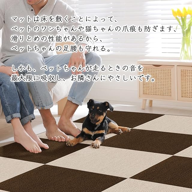 セリオン ジョイントマット タイルカーペット タイルマット ずれない 吸着マット 防音 床暖房にも対応 洗えるカーペット ペット用 床保護 チェアマット ズレにくいマット カット可能 吸着カーペット ペット猫犬用 掃除ラクラク 高齢者滑り止め対策 【45*45cm*40枚入り】色:ベージュ*ブラウン