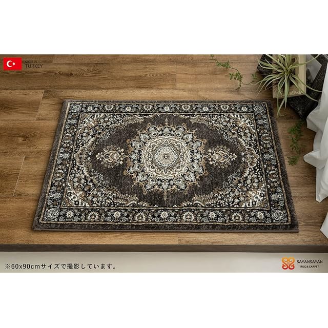 サヤンサヤン メダリオン マット リープ 90×140 1畳 チャコールブラウン 75万ノット