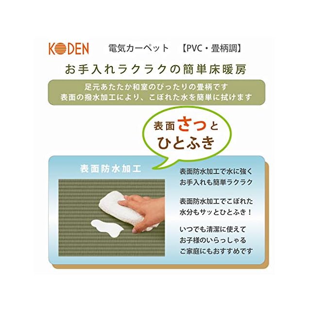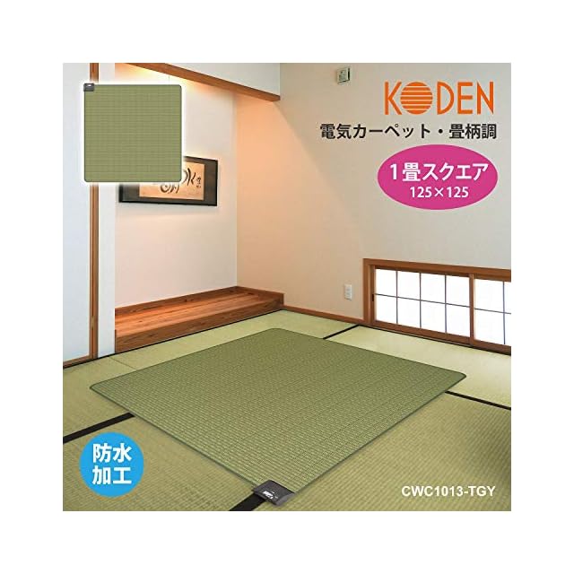 広電(KODEN) ホットカーペット 1畳 正方形 125×125cm 防水 グリーン 畳柄 省エネ スライド温度調節 CWC1013-TGY