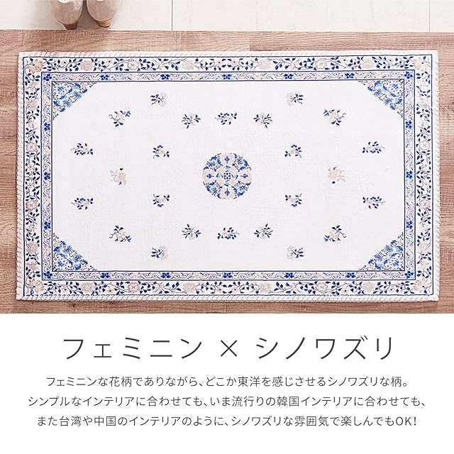 萩原 玄関マット 屋内 アイボリー 約50×80cm 「ミュゲ」 洗える 滑りにくい加工付き フェミニン シノワズリ シャビーシック 韓国インテリア